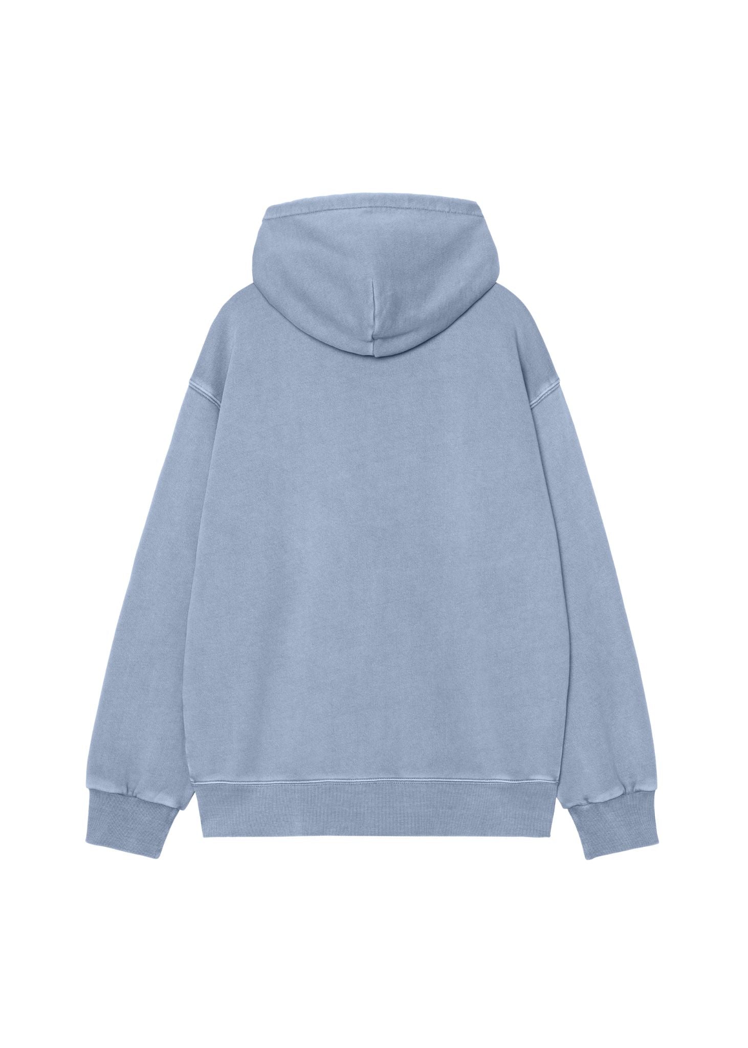 Constructed from heavyweight cotton jersey, the jacket features a soft brushed interior for superior warmth and all-day comfort. The garment-dyed process gives the Gentle Blue colourway a rich, slightly faded tone with subtle variations, creating a unique, lived-in look and premium feel.