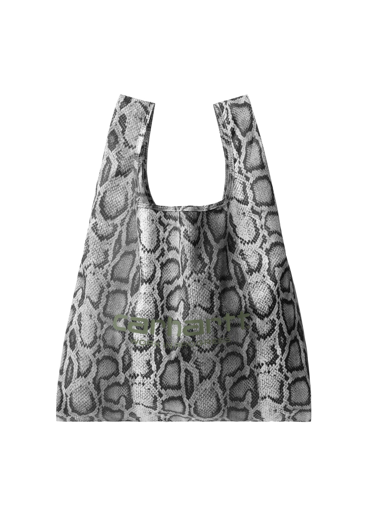 Stay stylish and sustainable with the Carhartt WIP Snake Camo Shopping Bag in Snake Camo. This durable, reusable tote features a bold snake camo print for a standout look while offering practical storage for groceries, everyday essentials, gym gear or daily carry items. Designed with sturdy handles and a lightweight yet robust construction, it’s built to withstand repeated use and heavy loads without compromising comfort or style. Finished with subtle Carhartt WIP branding, this shopping bag merges functional design with authentic streetwear flair.