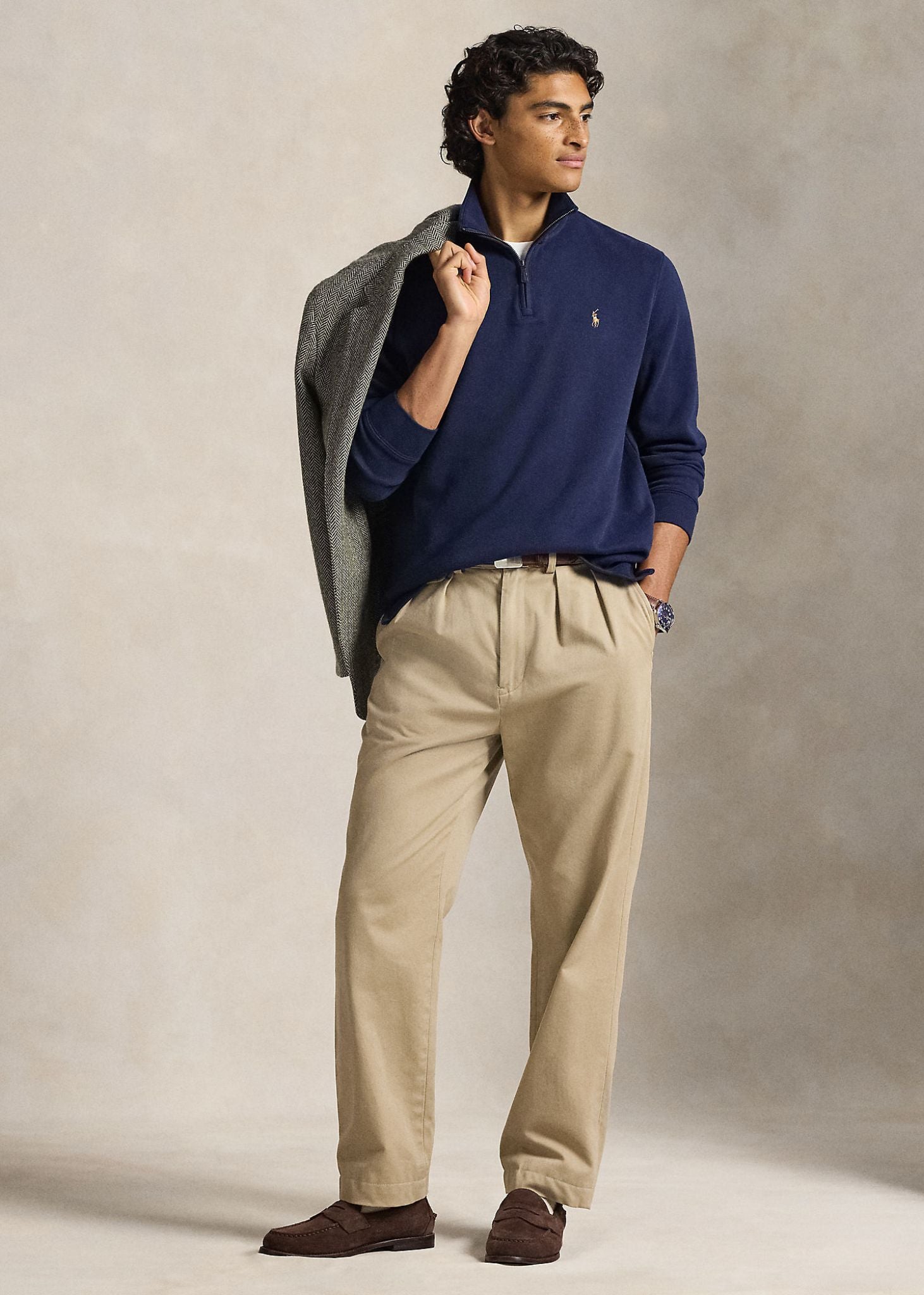 Refined and effortlessly versatile, this Ralph Lauren quarter-zip pullover is crafted from the brand’s signature Estate-rib fabric, made with lightweight, peached cotton for an exceptionally soft hand feel. Designed to deliver comfort without compromising on style, it’s an elevated essential for layering across seasons.