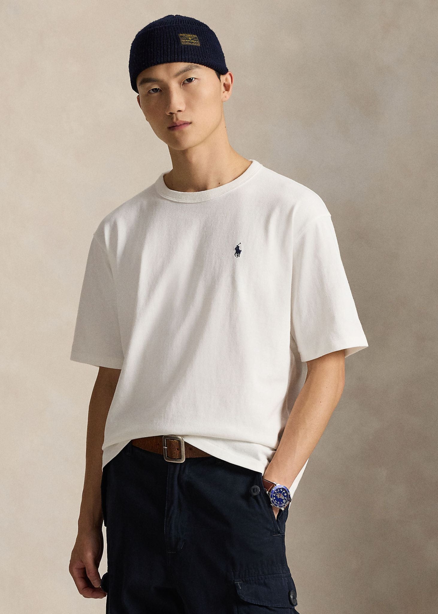 Designed in a Relaxed Fit, the silhouette sits between Classic Fit and Big Fit—cut fuller through the chest and shoulders with a slightly shorter length for a contemporary, comfortable shape. The crewneck and short sleeves provide timeless styling, while Ralph Lauren’s iconic branding adds standout details: a signature embroidered Polo Pony at the left chest and “Polo Ralph Lauren” logo with Pony embroidery at the center back.