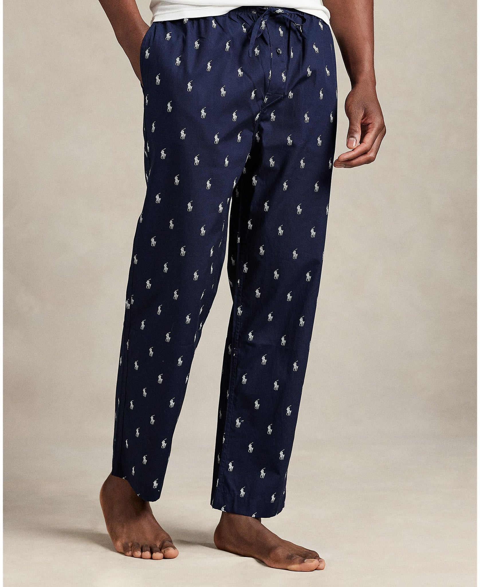 The signature Pony motif is presented in a repeating all-over print, combining refined preppy style with comfortable craftsmanship. A secure yet flexible elasticated waistband with drawstring ensures an adjustable fit, while side on-seam pockets offer discreet functionality. The single-button fly and Polo RL centre-front label add signature polish without compromising ease.